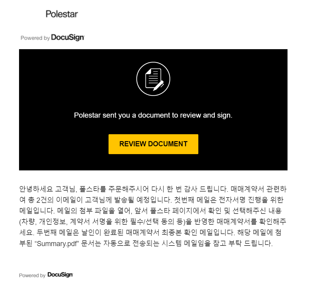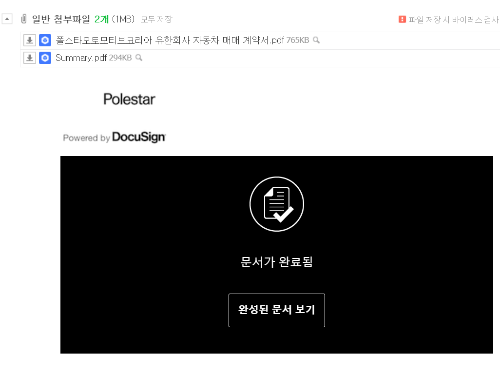 이걸 열어서 계약서에 서명을 완료하면 매매계약서가 메일로 다시 옵니다.