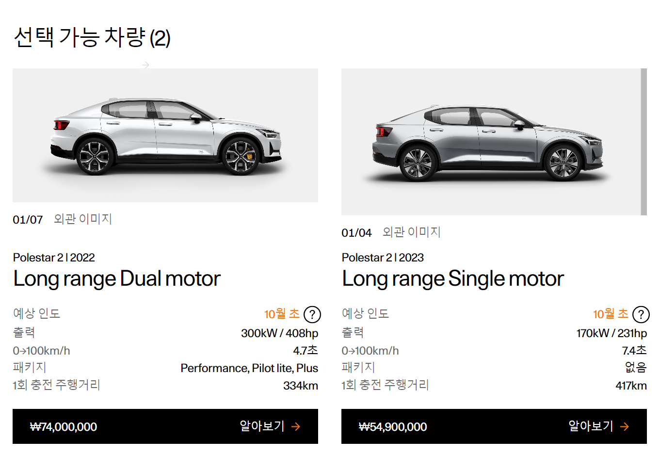 싱글모터 2022년식(가격 오르기 전이라 200 저렴)에 plus, pliotlite 패키지 차량이 있는겁니다!! 게다가 화이트 색상.
