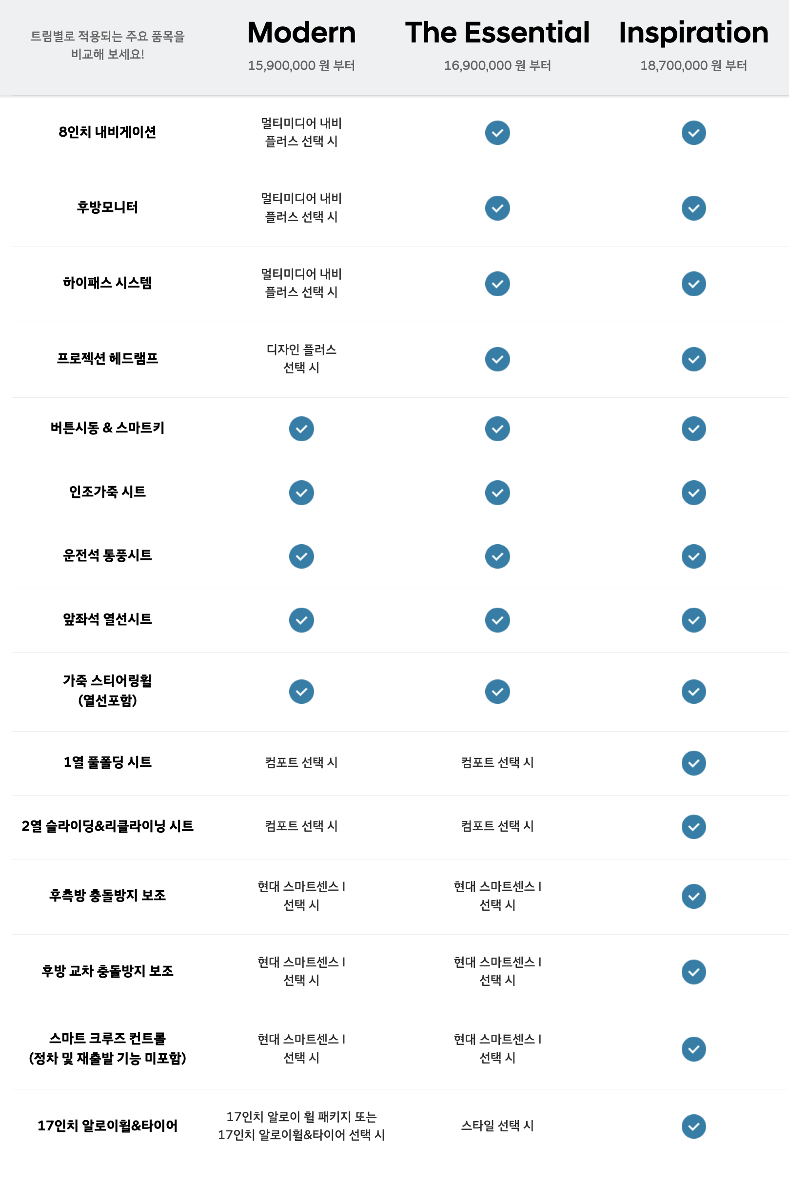 인스퍼레이션과의 차이점은 컴포트, 스마트센스1, 스타일 정도라고 보면 되겠습니다.