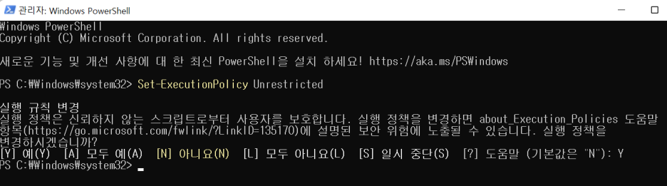 위 명령어를 수행후 Y를 입력하고 Enter키를 누르면 적용됩니다.