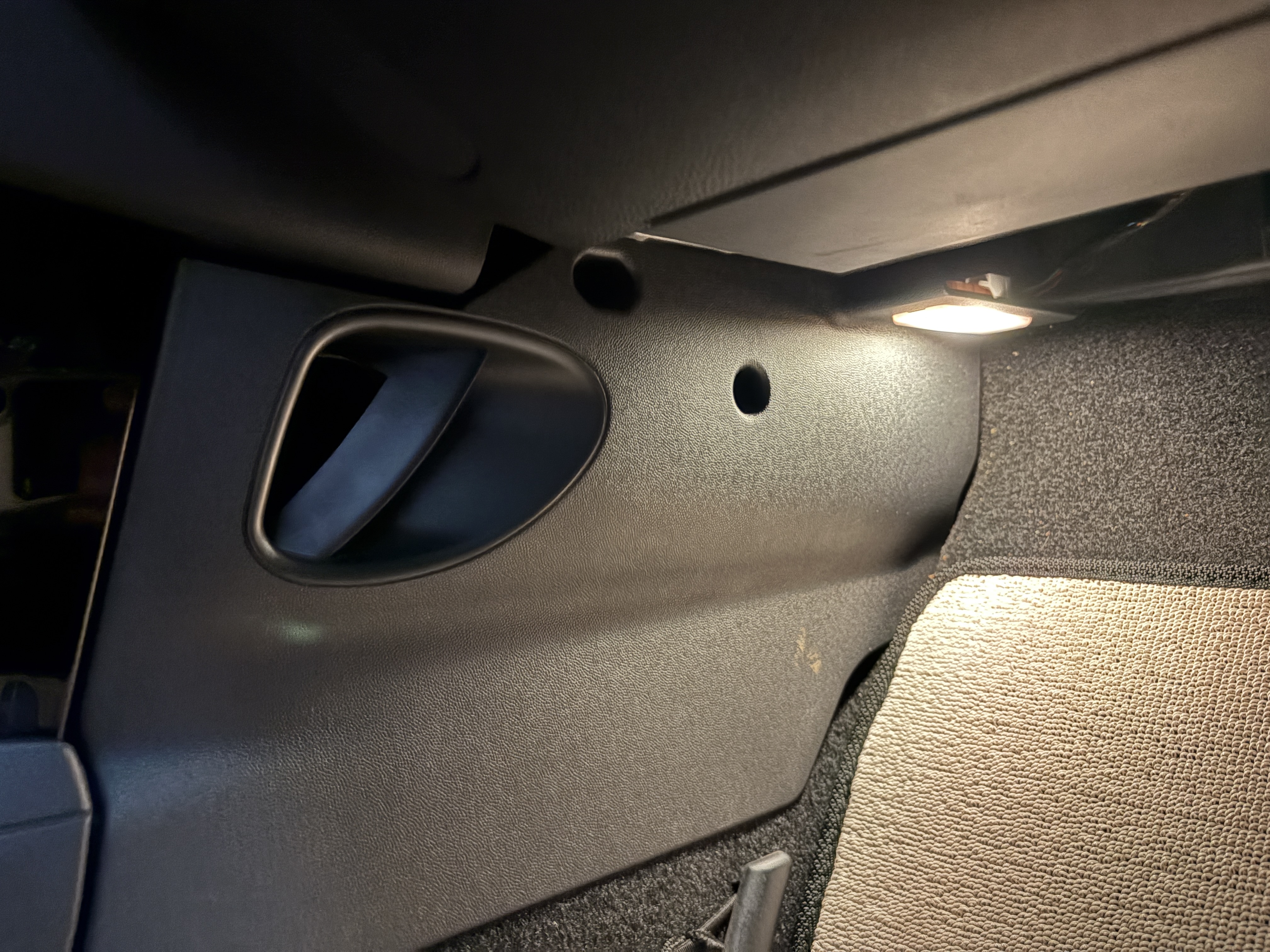 조수석 문을 활짝 열고 기어들어가면.. 이렇게 있는데,, 동그란 구멍 부분에 별 나사가 박혀있다. 별드라이버로 돌려서 나사 빼고 확 잡아당기면 빠진다.. 다만 뺄떼 풋등 케이블이 있으니 조심해야 한다! 꼭 조심!